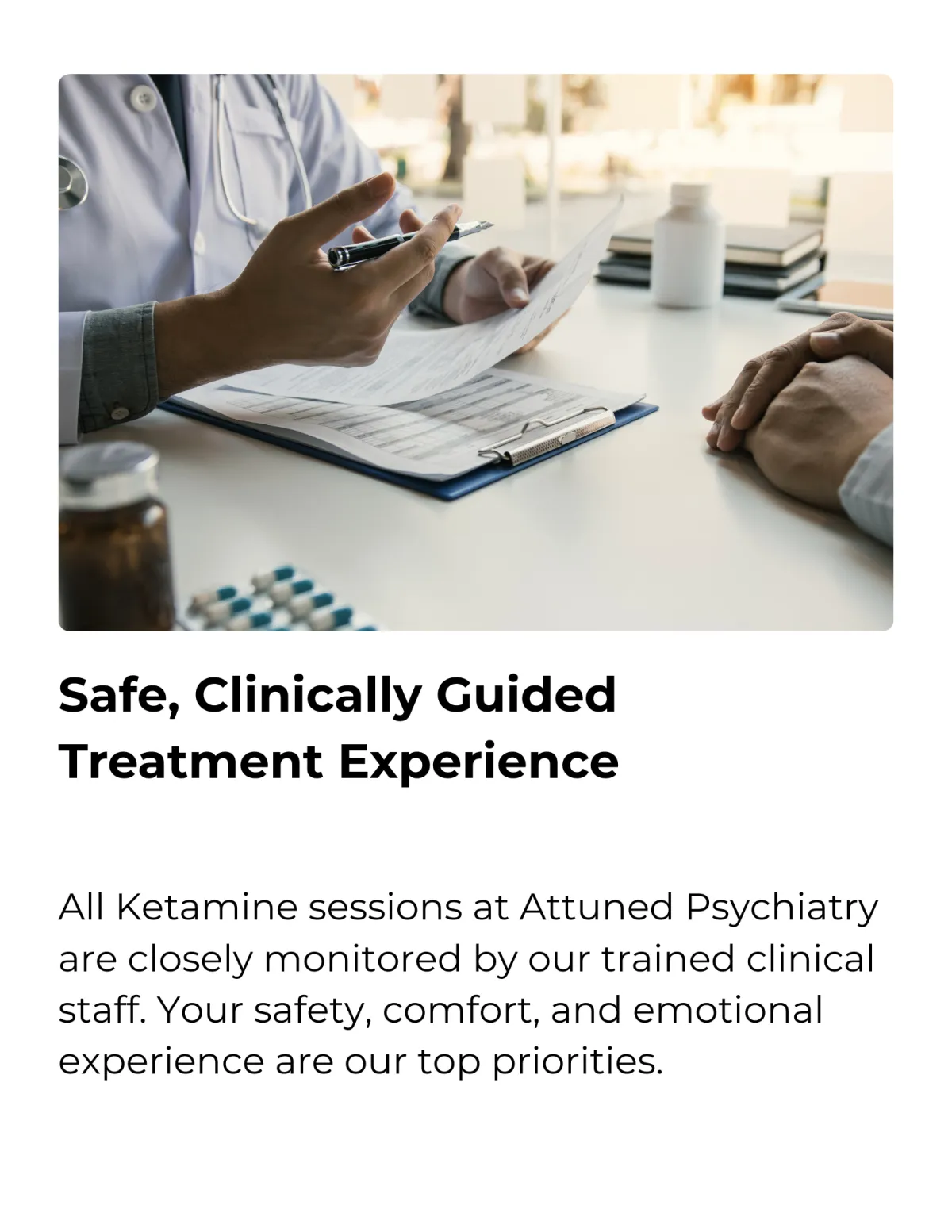 At Attuned Psychiatry, IM and oral ketamine are administered in a safe, supportive, medically supervised environment.