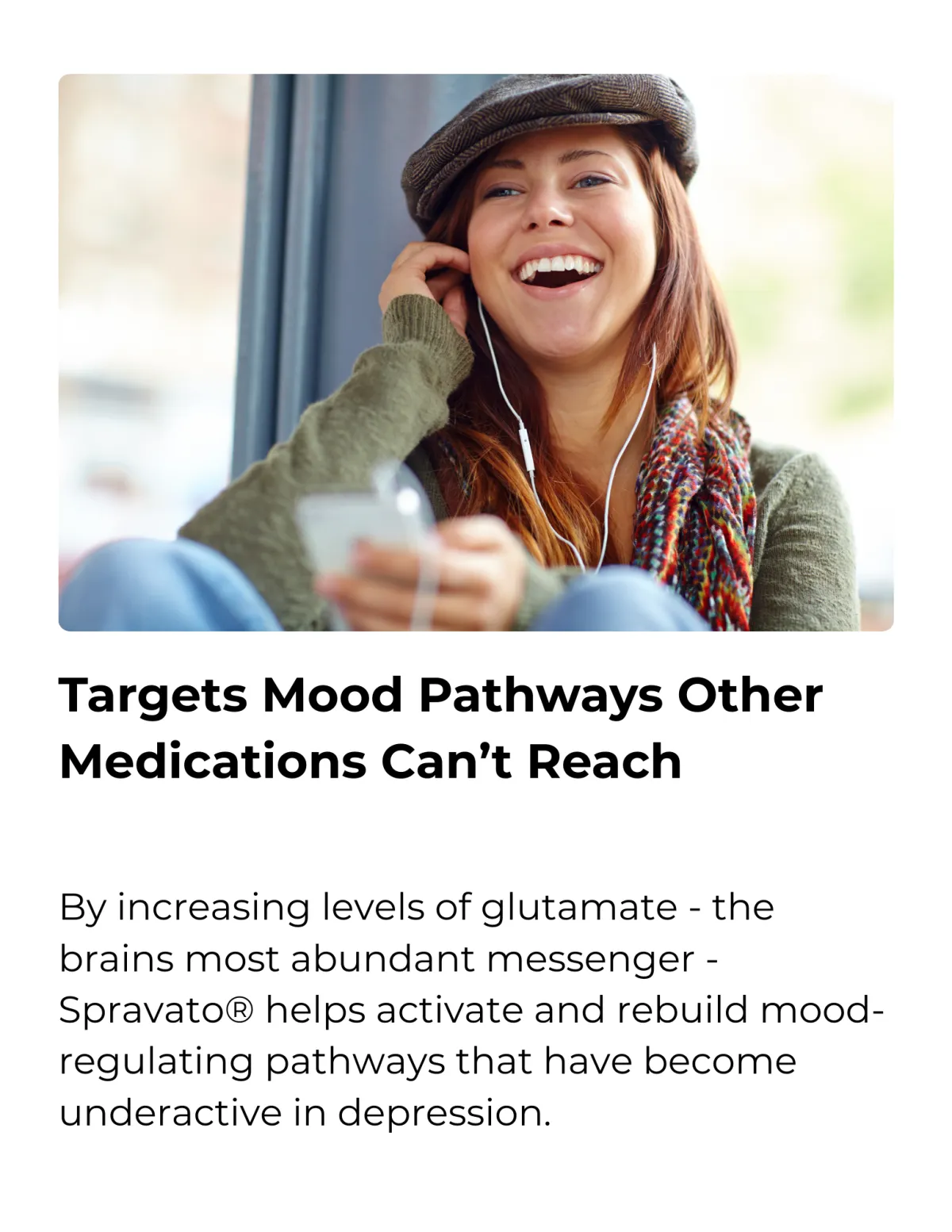 Spravato® is an FDA-approved treatment for major depressive disorder (MDD) and treatment-resistant depression (TRD). It works differently from traditional antidepressants, targeting the glutamate system to restore neural pathways and improve mood—often within hours.