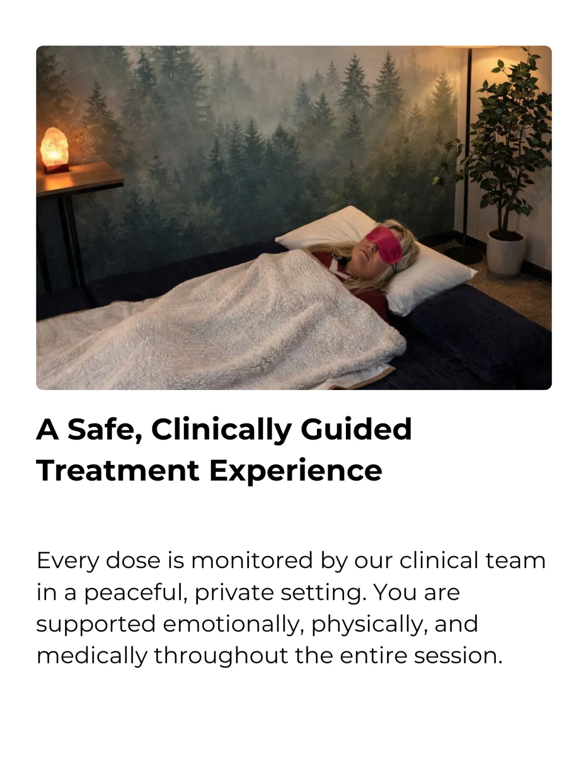 Your dosing schedule is tailored to you. Treatments take place in a calming environment where you can relax and feel supported.